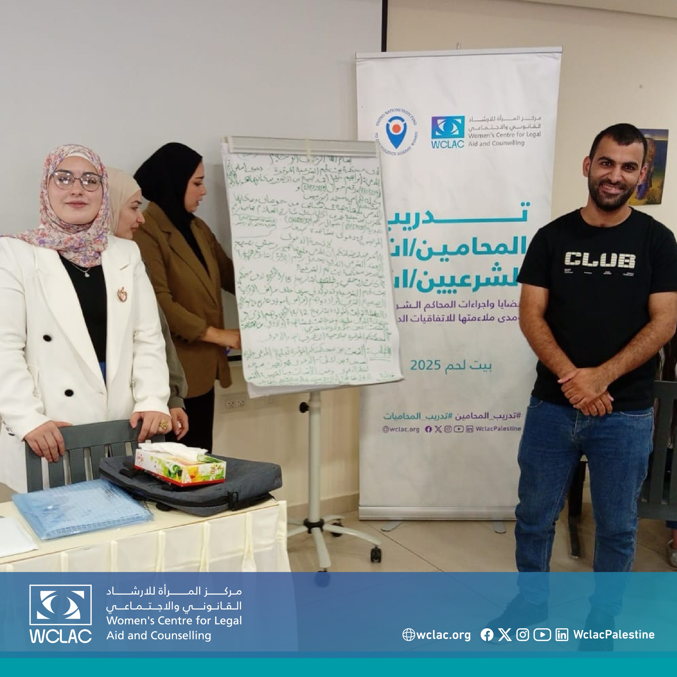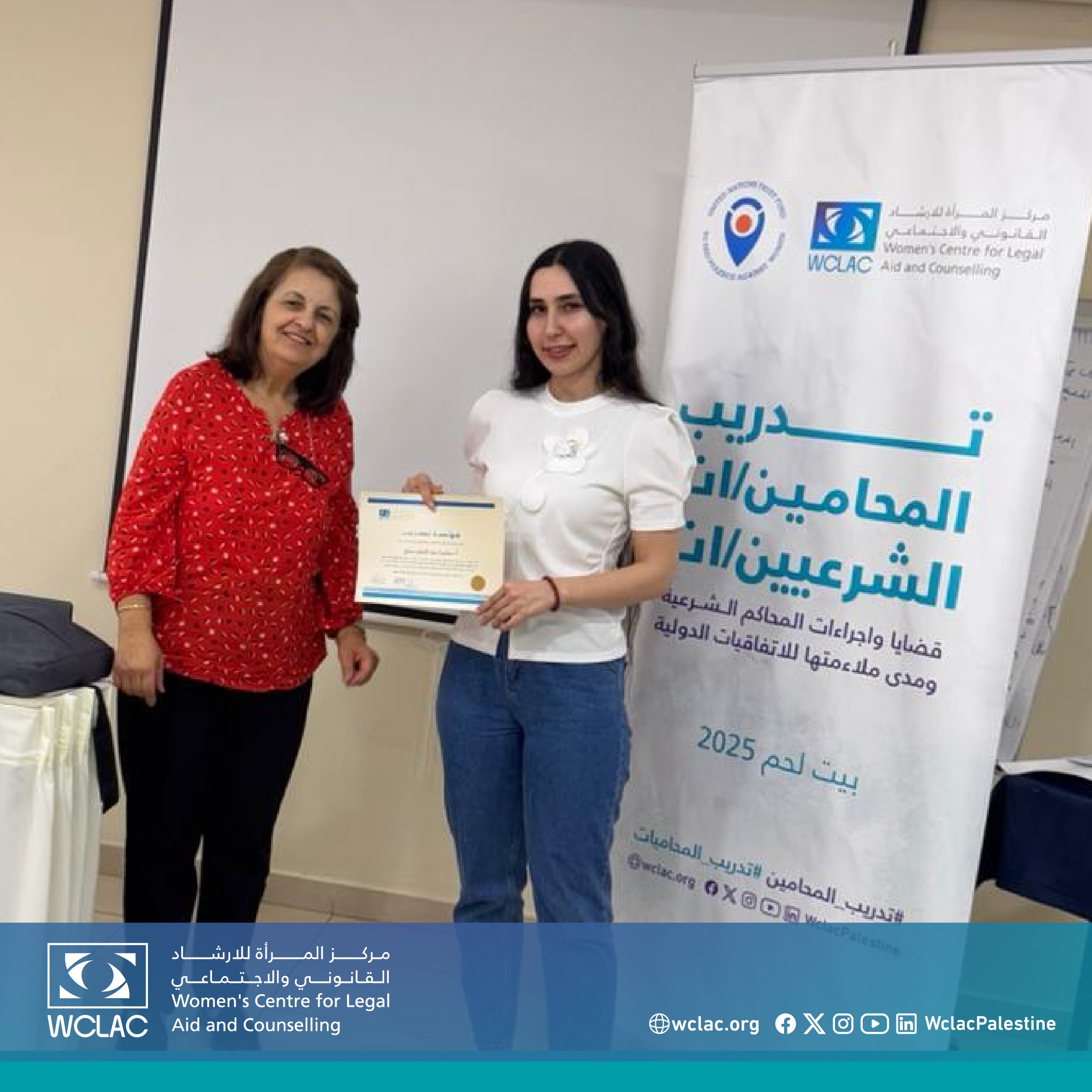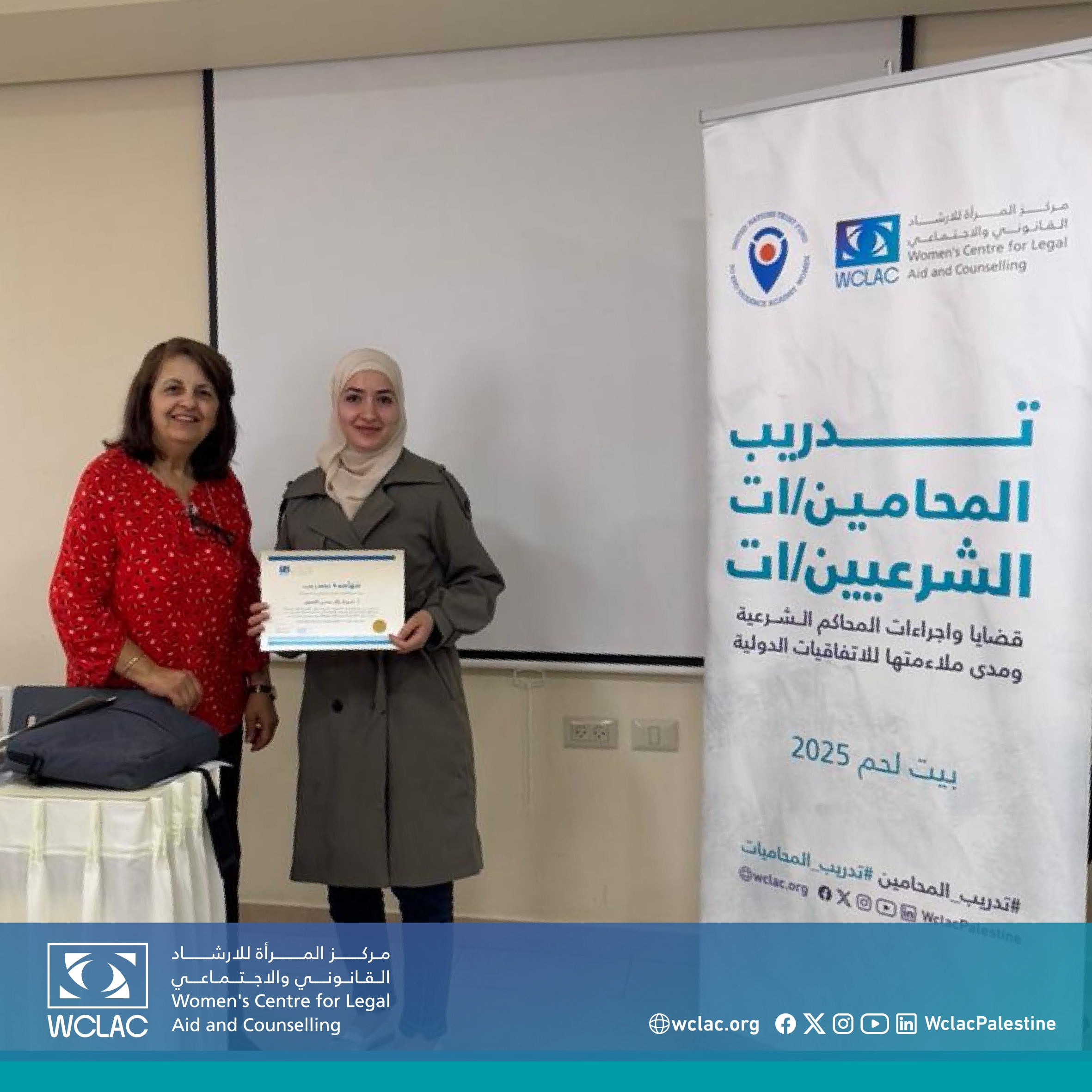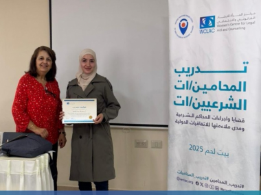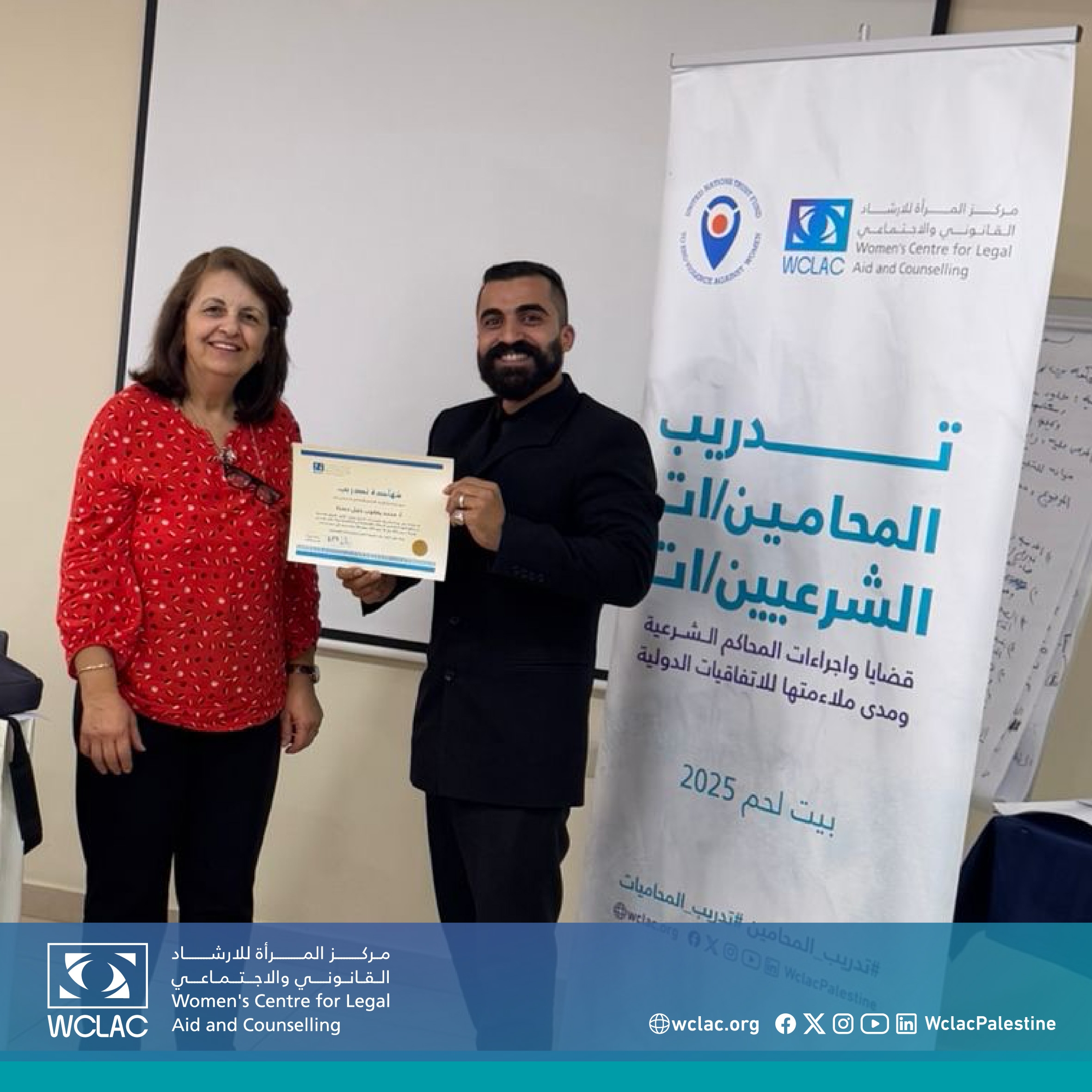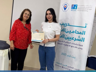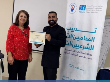 بيت لحم | 19 تموز 2025 - اختتم مركز المرأة للإرشاد القانوني والاجتماعي اليوم أعمال دورة تدريبية متخصصة بعنوان "القضايا والإجراءات في المحاكم الشرعية" من منظور النوع الاجتماعي، والتي نُظمت في مدينة بيت لحم بمشاركة 20 محاميًا ومحامية من مختلف محافظات الضفة الغربية.