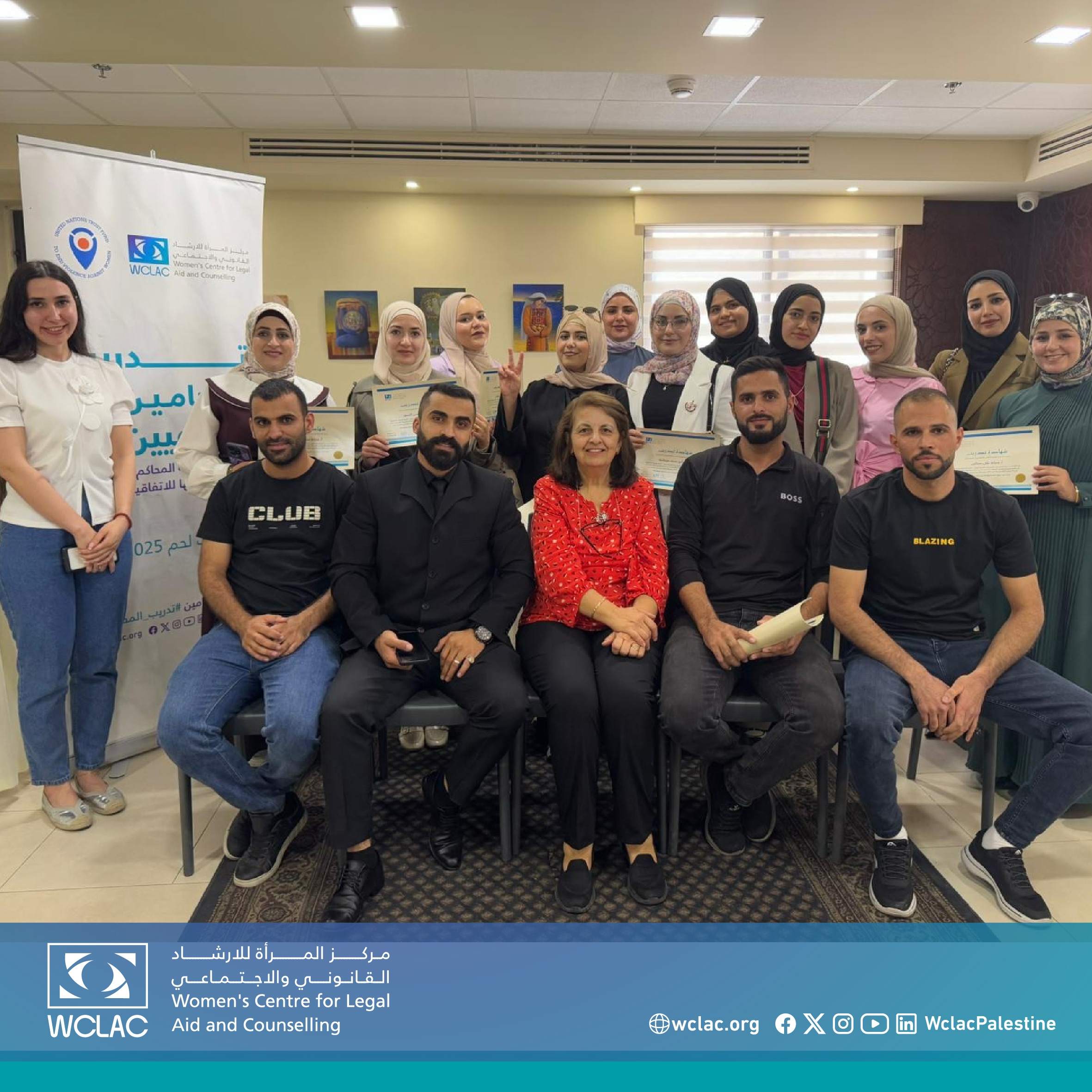 ويؤكد مركز المرأة للإرشاد القانوني والاجتماعي التزامه الراسخ ببناء قدرات المحامين/ات الشباب، وتمكينهم من الإسهام الفاعل في دعم العدالة وحقوق النساء في المجتمع الفلسطيني.